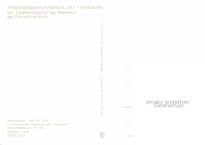 Lokomotive Traditionsbahn Radebeul Ost Radeburg Wiesental Promnitz postalisch nicht gelaufen Erhaltung siehe scans [PaolaD17]