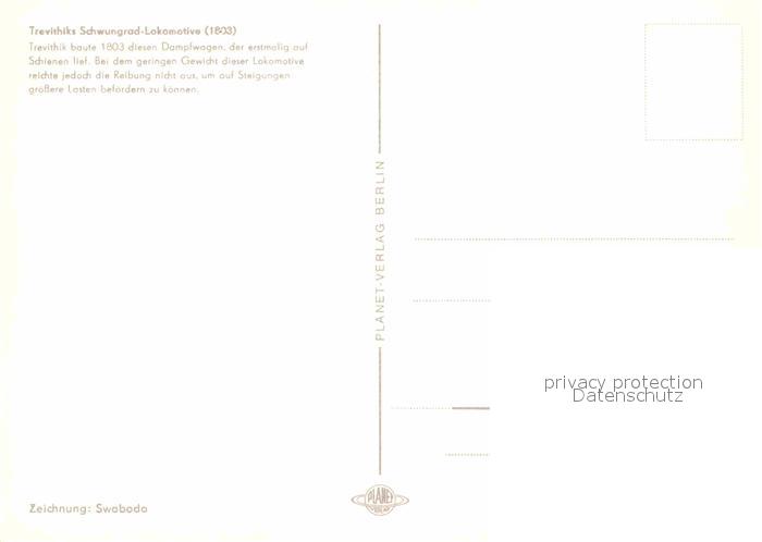 Lokomotive Trevithiks Schwungrad-Lokomotive 1803 Zeichnung Swoboda postalisch nicht gelaufen Erhaltung siehe scans [PaolaD17]