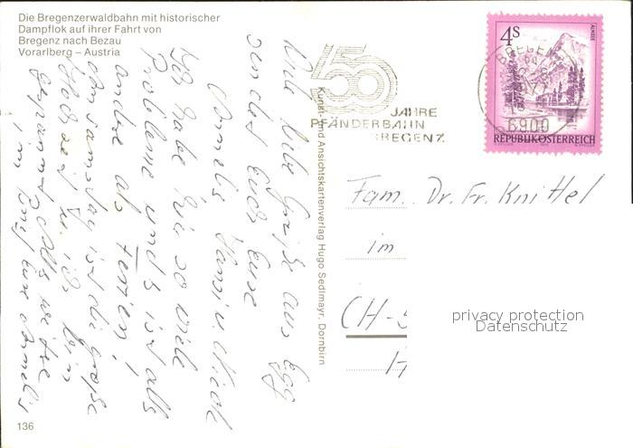 alte Postkarte Lokomotive Waelderbaehnle Bregenz postalisch gelaufen Erhaltung siehe scans