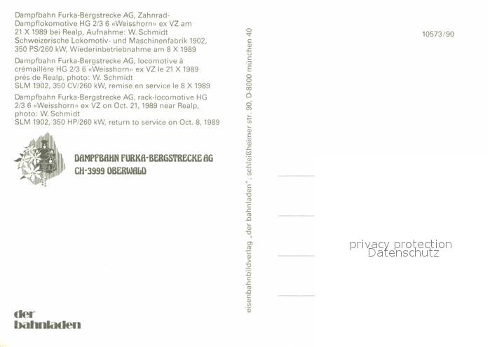 Lokomotive Zahnrad-Dampflokomotive HG 2/3 6 Weisshorn Realp postalisch nicht gelaufen Erhaltung siehe scans [PaolaD17]
