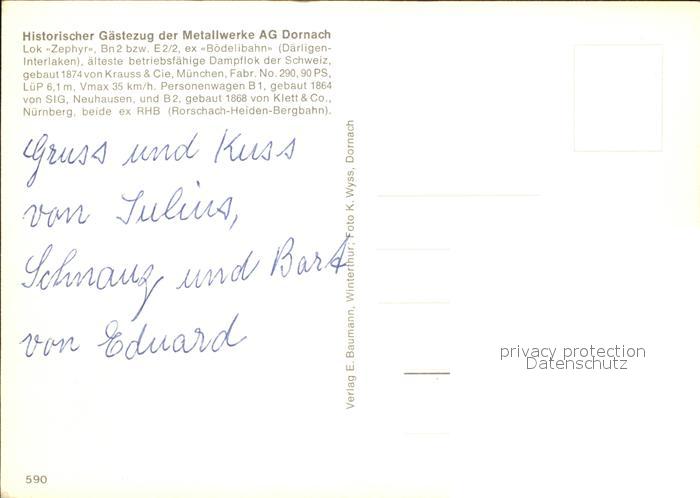 Lokomotive Zephyr Gaestezug Metallwerke AG Dornach postalisch nicht gelaufen Erhaltung siehe scans