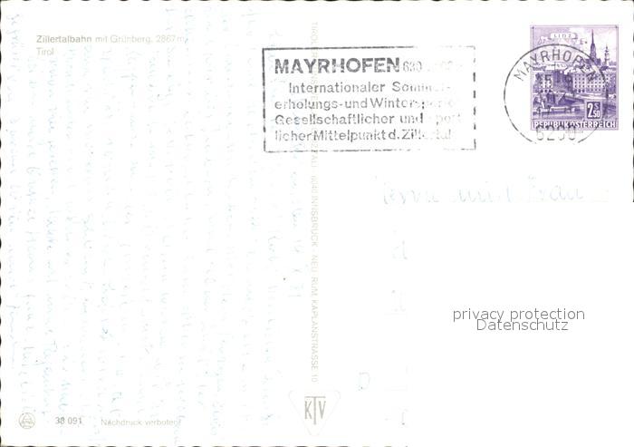 alte Postkarte Lokomotive Zillertalbahn Gruenberg Tirol postalisch gelaufen Erhaltung siehe scans