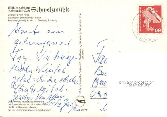 73664032 alte Postkarte Lollar M?hlengasthaus Restaurant Caf? Schmelzm?hle postalisch gelaufen Erhaltung siehe scans [LiesaD40] KatCode: 11110006531013