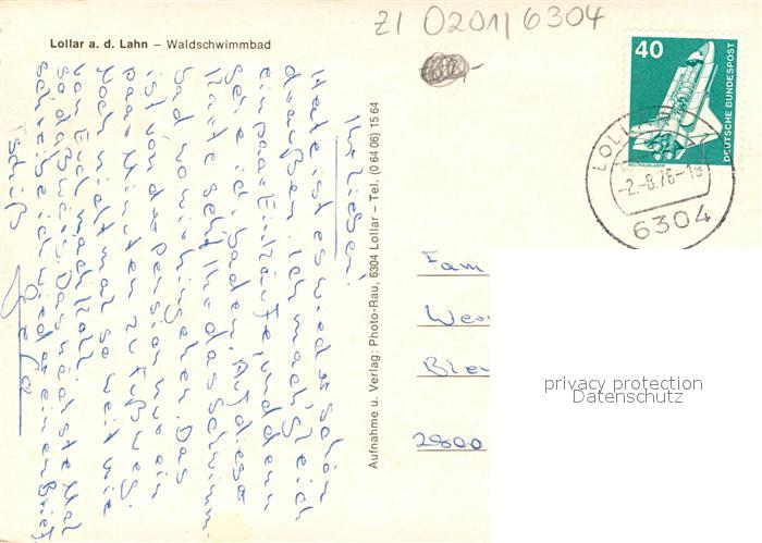73166544 alte Postkarte Lollar Waldschwimmbad postalisch gelaufen Erhaltung siehe scans [FriedD77] KatCode: 11110006531013