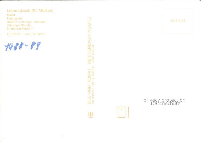 72262180 Lommatzsch Markt Kirche Robert Volkmann Denkmal Bueste Doebelner Strasse Sitzportal postalisch nicht gelaufen Erhaltung siehe scans KatCode: 11110014280210