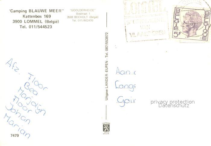 73655435 carte postale Lommel Camping Blauwe Meer Freibaeder postalisch gelaufen Erhaltung siehe scans [WerneD78] KatCode: 11070072001940
