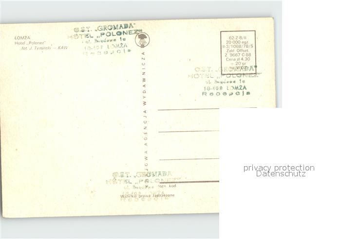 Lomza Hotel Polonez Gastraum Rezeption postalisch nicht gelaufen Erhaltung siehe scans