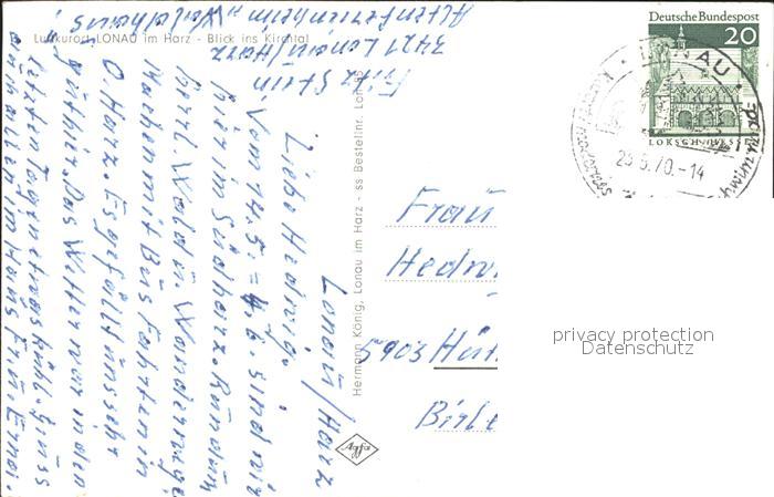 72066531 alte Postkarte Lonau Luftkurort Blick ins Kirchtal postalisch gelaufen Erhaltung siehe scans KatCode: 11110003156009