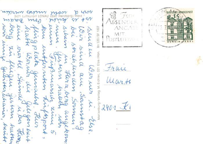 73878672 alte Postkarte Lonau Panorama Luftkurort postalisch gelaufen Erhaltung siehe scans [FriedD77] KatCode: 11110003156009