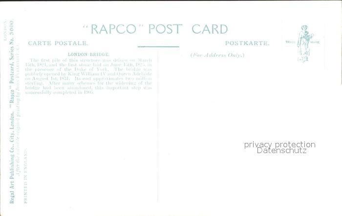11923729 London Bridge postalisch nicht gelaufen Erhaltung siehe scans KatCode: 11570UKI1I11AA
