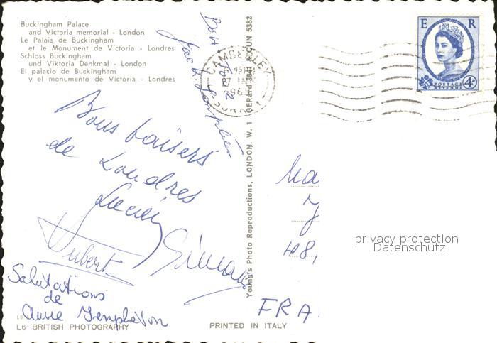 old postcard London Buckingham Palace and Victoria Memorial postalisch gelaufen Erhaltung siehe scans