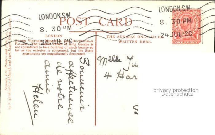 11777628 old postcard London Buckingham Palace Queen Victoria Memorial Statue postalisch gelaufen Erhaltung siehe scans KatCode: 11570UKI1I11AA