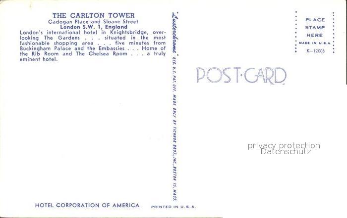 London Carlton Tower postalisch nicht gelaufen Erhaltung siehe scans