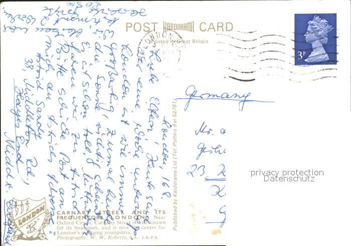 old postcard London Carnaby Street postalisch gelaufen Erhaltung siehe scans