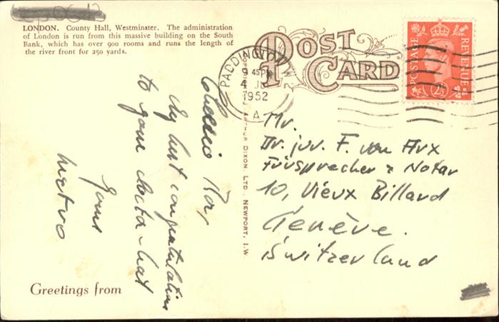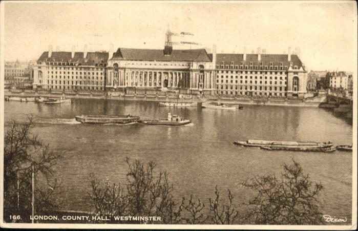 old postcard London County Hall Westminster Boot postalisch gelaufen