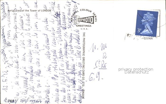 old postcard London Fliegeraufnahme Tower postalisch gelaufen Erhaltung siehe scans