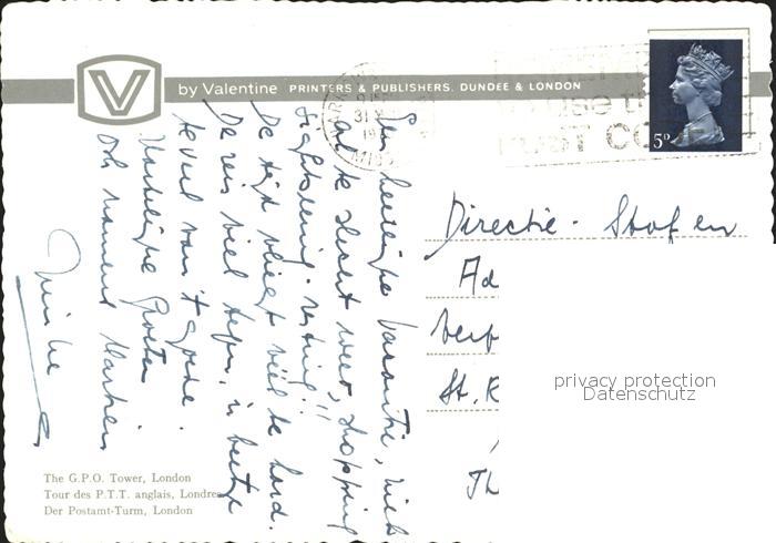 old postcard London GPO Tower postalisch gelaufen Erhaltung siehe scans