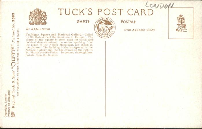 London [Handschriftlich] Trafalgar Square National Gallery postalisch nicht gelaufen