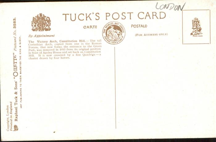 London [Handschriftlich] Wellington Arch postalisch nicht gelaufen