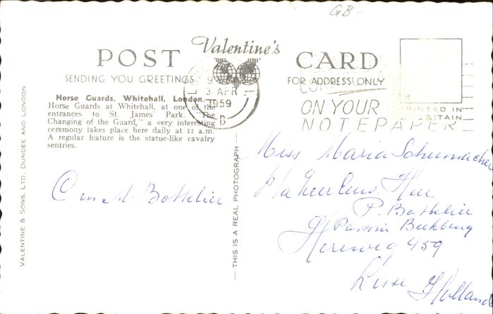 11474875 old postcard London Horse Guards Sentries Whitehall postalisch gelaufen Erhaltung siehe scans KatCode: 11570UKI1I11AA