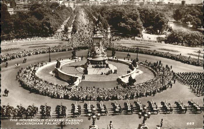 old postcard London Household Cavalry Passing Buckingham Palace postalisch gelaufen