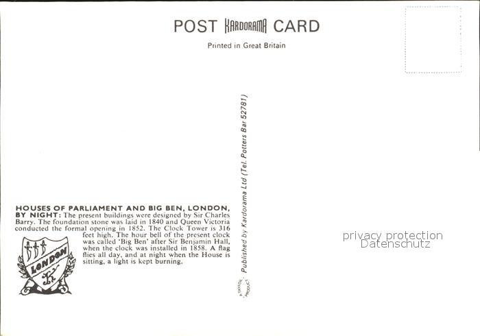 London Houses of Parliament and Big Ben postalisch nicht gelaufen Erhaltung siehe scans