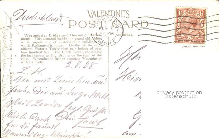 11777459 old postcard London Houses of Parliament and Westminster Bridge Thames postalisch gelaufen KatCode: 11570UKI1I11AA