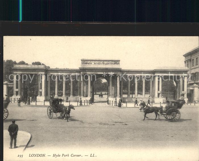 London Hyde Park Corner Pferdedroschke postalisch nicht gelaufen Erhaltung siehe scans