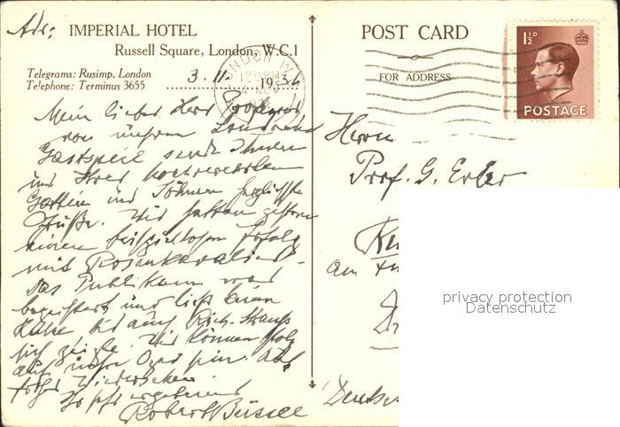 12282036 old postcard London Imperial Hotel Russell Square postalisch gelaufen Erhaltung siehe scans KatCode: 11570UKI1I11AA