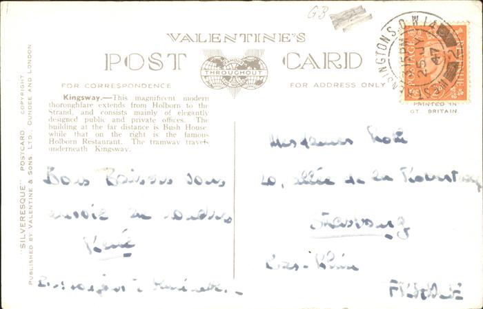 11474909 old postcard London Kingsway postalisch gelaufen Erhaltung siehe scans KatCode: 11570UKI1I11AA