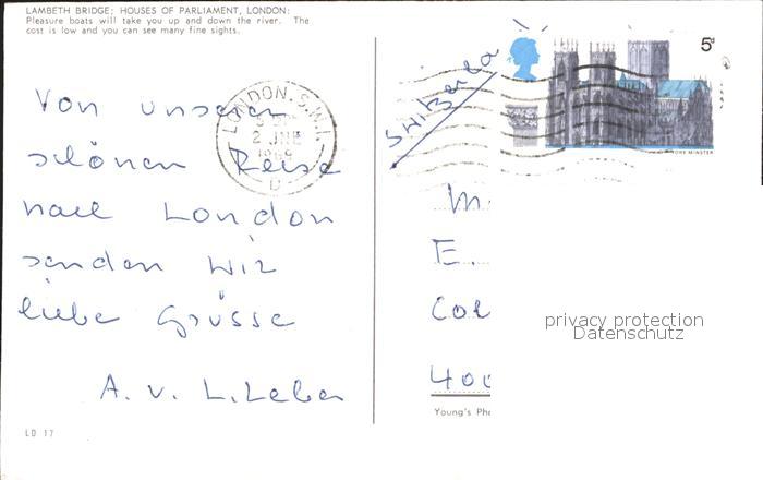 old postcard London Lambeth Bridge Houses of Parliament postalisch gelaufen Erhaltung siehe scans
