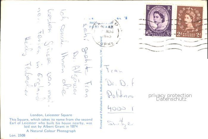 old postcard London Leicester Square Monument Denkmal postalisch gelaufen Erhaltung siehe scans