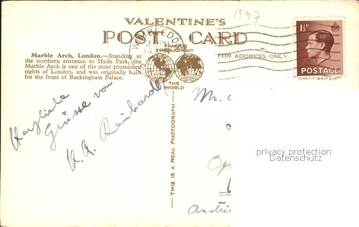 old postcard London Marble Arch postalisch gelaufen Erhaltung siehe scans
