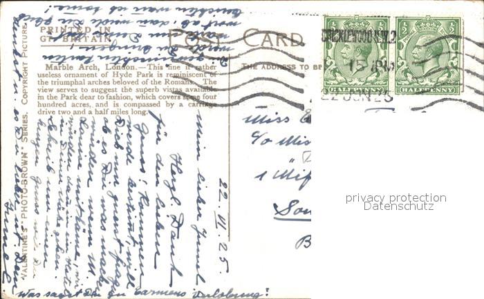 11777644 old postcard London Marble Arch Hyde Park Doppeldeckerbus postalisch gelaufen Erhaltung siehe scans KatCode: 11570UKI1I11AA