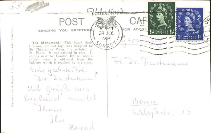 11474689 old postcard London Monument postalisch gelaufen Erhaltung siehe scans KatCode: 11570UKI1I11AA
