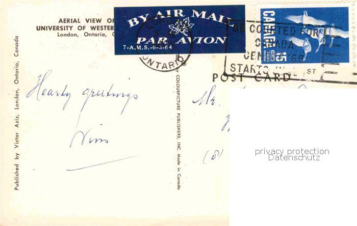 old postcard London Ontario Fliegeraufnahme University postalisch gelaufen Erhaltung siehe scans [LiesaD40]
