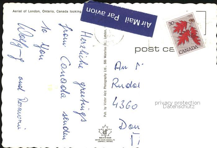 old postcard London Ontario Fliegeraufnahme postalisch gelaufen Erhaltung siehe scans [AndreD76 kt119box]