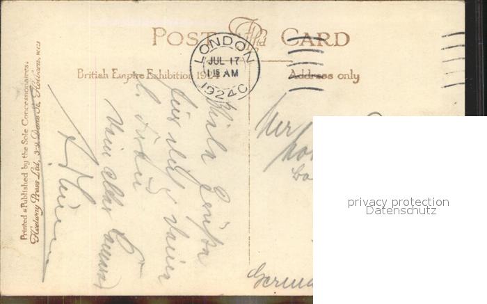 11674523 old postcard London Palace of Engineering from the Lake British Empire Exhibition postalisch gelaufen Erhaltung siehe scans KatCode: 11570UKI1I11AA