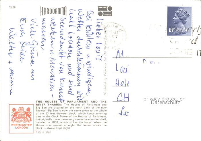 old postcard London Parlamentsgebaeude postalisch gelaufen Erhaltung siehe scans