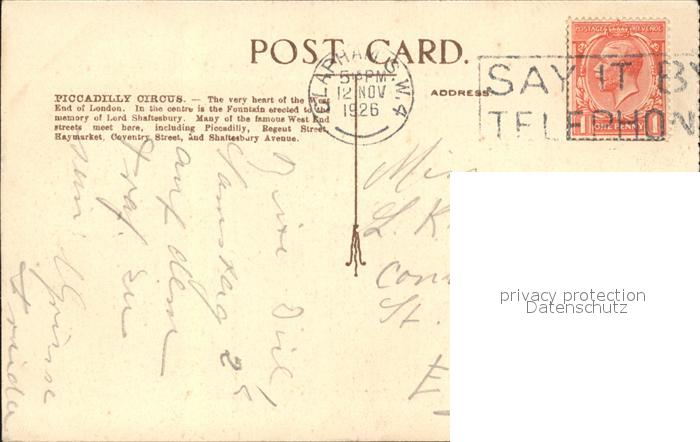 11923154 old postcard London Piccadilly Circus Busse Autos postalisch gelaufen KatCode: 11570UKI1I11AA