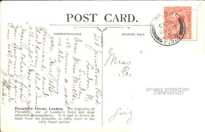 11777504 old postcard London Piccadilly Circus Monument Bus Automobil postalisch gelaufen Erhaltung siehe scans KatCode: 11570UKI1I11AA
