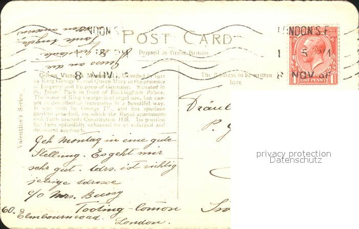 old postcard London Queen Victora Memorial and Buckingham Palace postalisch gelaufen Erhaltung siehe scans