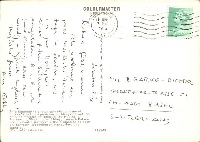 old postcard London River Thames Houses of Parliament Westminster Abbey Lambeth Palace St. Paul’s Cathedral Bridges aerial view postalisch gelaufen Erhaltung siehe scans