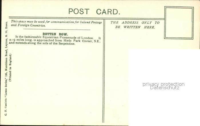 London Rotten Row Equestrian Promenade Lesco Series postalisch nicht gelaufen Erhaltung siehe scans