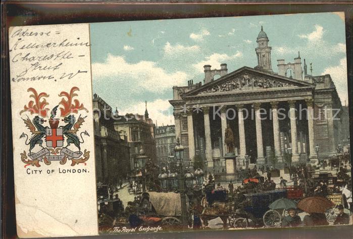 old postcard London Royal Exchange Monument Pferdekutschen postalisch gelaufen Erhaltung siehe scans