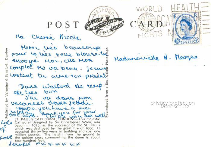 old postcard London Sankt Paul Cathedrale postalisch gelaufen Erhaltung siehe scans [KathaD81]