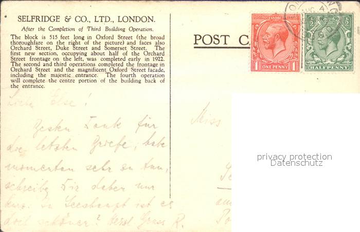 12178503 old postcard London Selfridge and Co Building postalisch gelaufen Erhaltung siehe scans KatCode: 11570UKI1I11AA