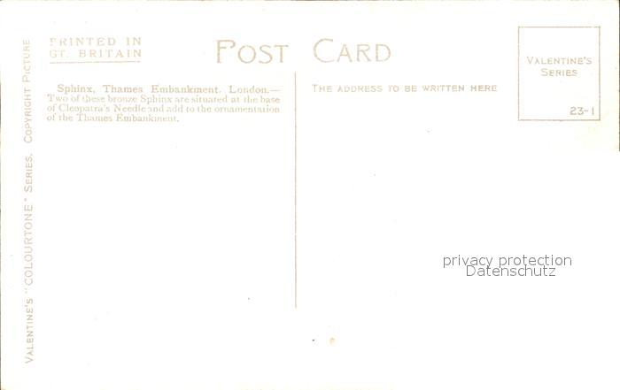 11777706 London Sphinx Thames Embankment Bridge postalisch nicht gelaufen Erhaltung siehe scans KatCode: 11570UKI1I11AA