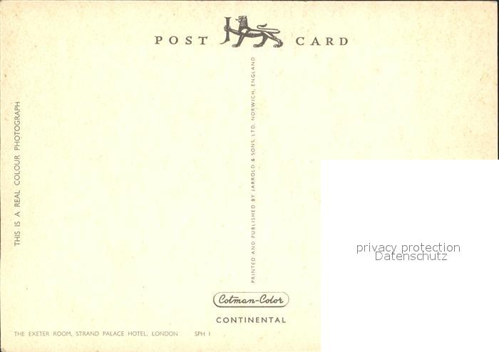 London The Exeter Room Strand Palace Hotel postalisch nicht gelaufen Erhaltung siehe scans
