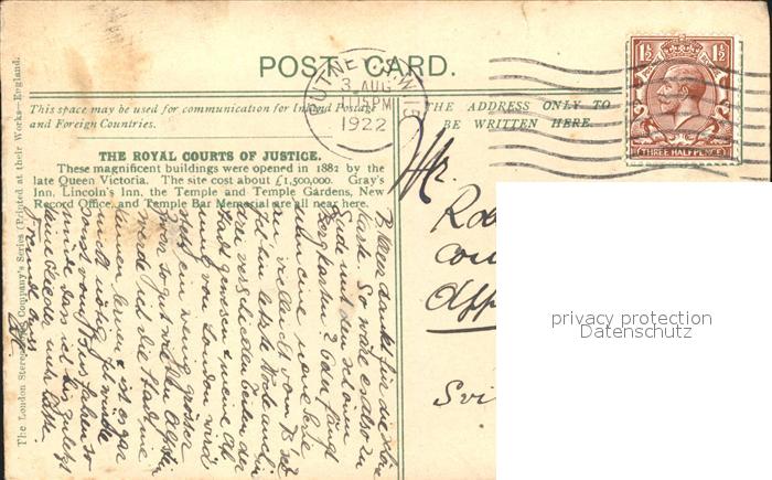 11777594 old postcard London The Law Courts postalisch gelaufen Erhaltung siehe scans KatCode: 11570UKI1I11AA